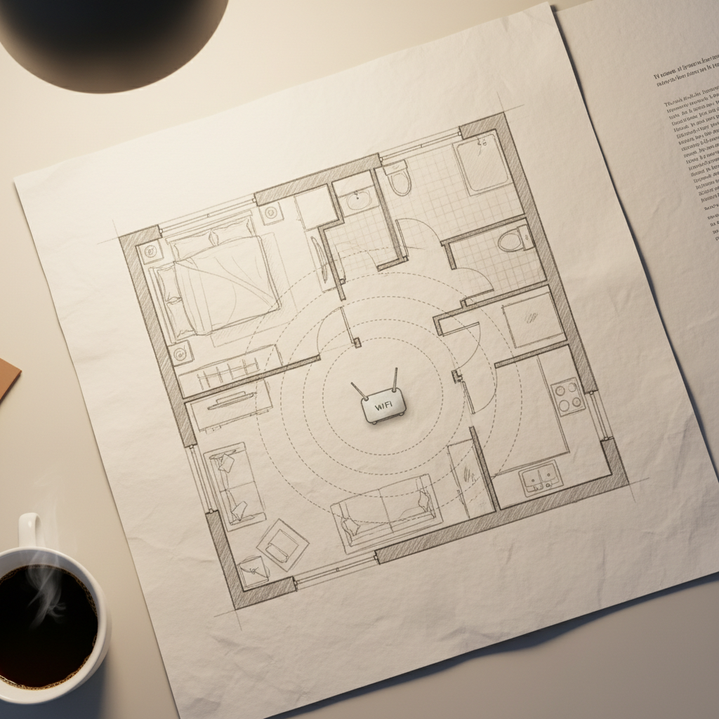 Here’s the thing that took me embarrassingly long to understand: the router doesn’t care about your floor plan preferences. It just broadcasts outward equally in every direction (more or less). So if you put it at one end of the house — near the front door, in the utility room, in the garage — half of that signal is blasting into the street or the neighbor’s yard.