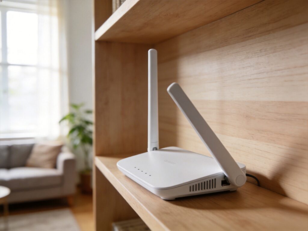 Routers placed on the floor lose a significant chunk of signal downward into the ground — which helps nobody. Placing it higher up, like on a bookshelf or mounted on a wall, lets the signal spread more evenly across the horizontal space where people actually are. Living room, bedroom, kitchen — all roughly the same floor level. The router should be as close to that plane as possible, or slightly above it.